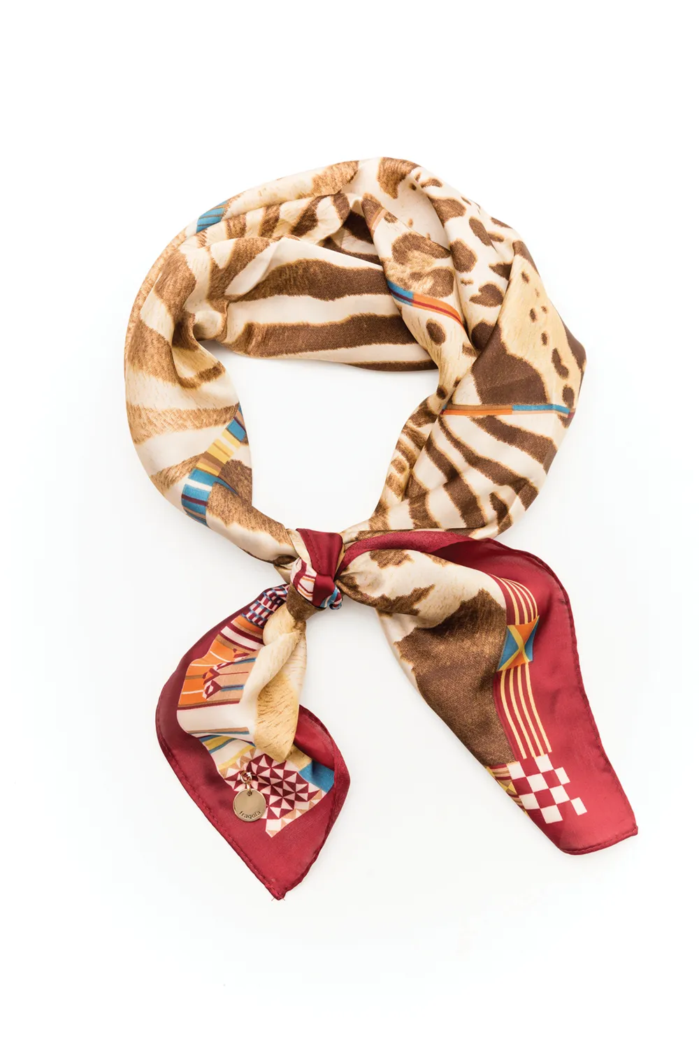 Κομψό και ευέλικτο, αυτό το τετράγωνο μαντήλι προσθέτει στιλ σε κάθε εμφάνιση. Κατασκευασμένο από υψηλής ποιότητας πολυεστέρα με σατέν υφή, προσφέρει απαλή αίσθηση και διακριτική λάμψη που θυμίζει μετάξι. Ιδανικό για να φορεθεί στον λαιμό, να δεθεί στα μαλλιά ή να διακοσμήσει την τσάντα σας, αποτελεί το απόλυτο αξεσουάρ που συνδυάζει πρακτικότητα και κομψότητα. Διαθέσιμο σε μοντέρνα prints και χρώματα που θα ανανεώσουν άμεσα το καθημερινό σας look.