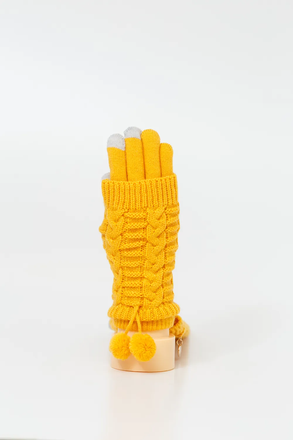 Σετ με 2 γάντια εξωτερικό fingeless για ευελιξία και εσωτερικό πλεκτό για πλήρη κάλυψη. Με λεπτομέρειες πλεξούδας, pom pom και άκρες touch screen για χρήση κινητού χωρίς να τα αφαιρείτε.