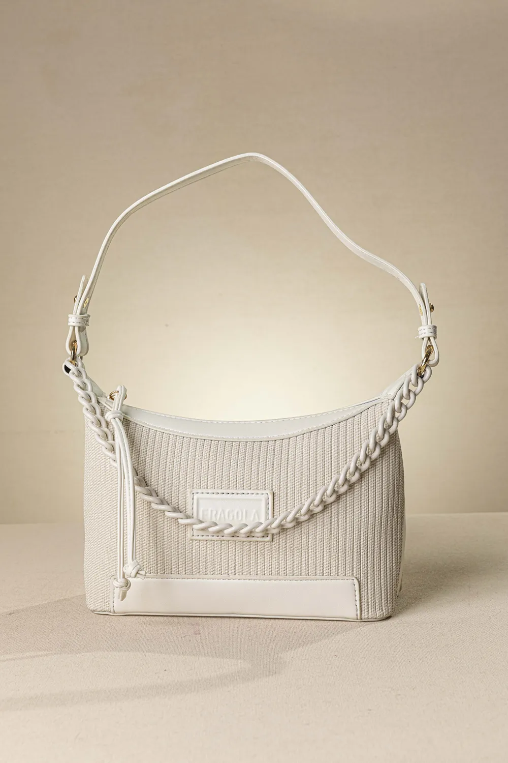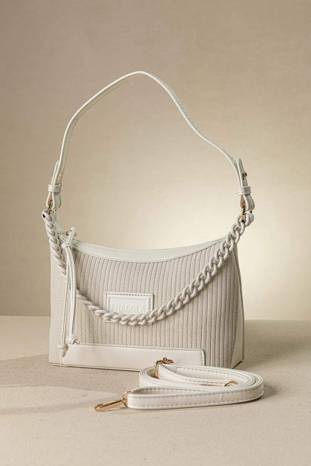 Τσαντάκι ώμου κατάλληλη για όλες τις ώρες της ημέρας αλλά και για όλες τις ηλικίες. Μια βαμμένη αλυσίδα στο μπροστινό της μέρος της δίνει έξτρα στιλ! Ένας ενιαίος χώρος που κλείνει με φερμουάρ και στο εσωτερικό της διαθέτει μια μικρή τσέπη με φερμουάρ. Επίσης διαθέτει έξτρα "χεράκι" για να μετατραπεί η τσάντα σε χιαστί.Υλικό: Συνθετικό δέρμα με υφή υφάσματος.