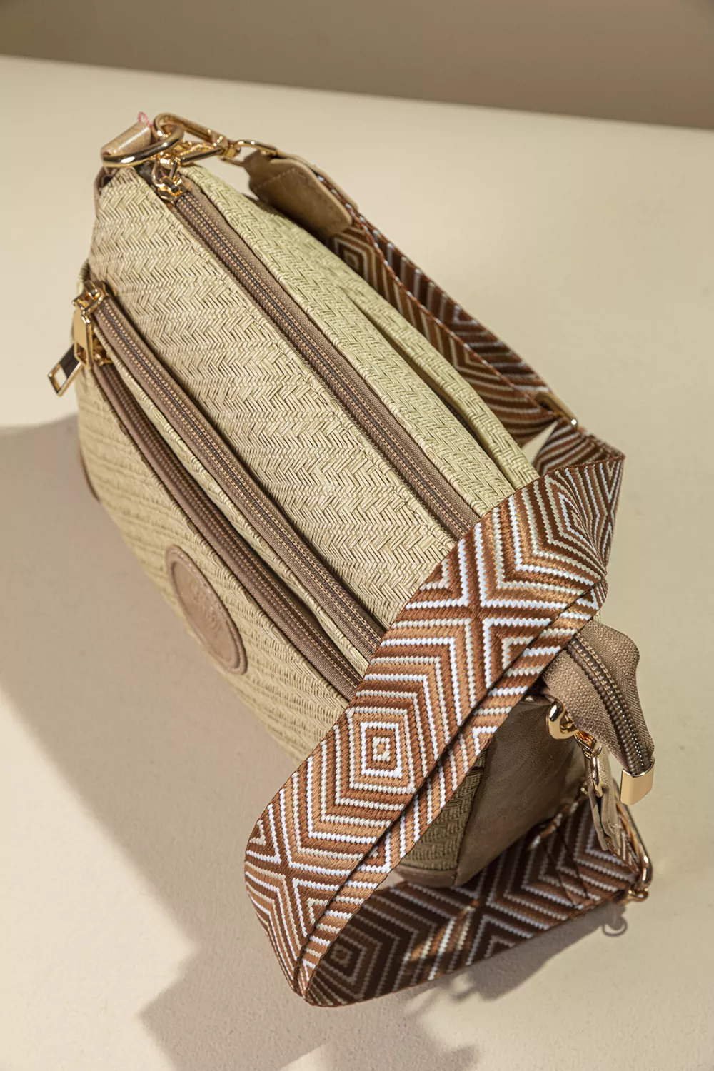 Υλικό: Συνθετικό ανάγλυφο δέρμα με μορφή ψάθας σε γήινα χρώματα