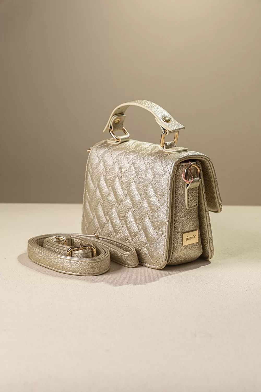 • Τριθέσια κομψή τσάντα χειρός με καπιτονέ υφή και χρυσό εντυπωσιακό κλείσιμο.