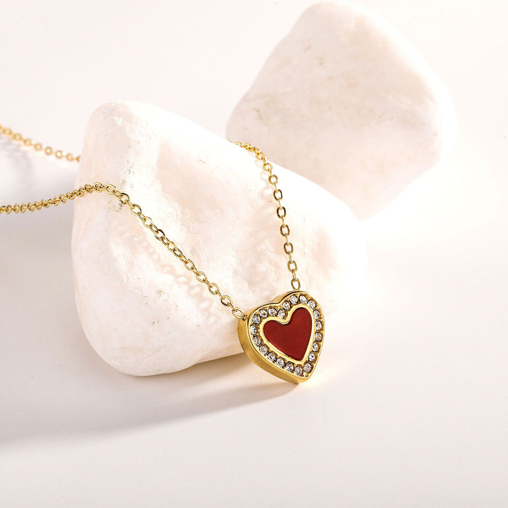 Κομψό ατσάλινο κολιέ με μενταγιόν σε σχήμα καρδιάς, διακοσμημένο με έντονο κόκκινο σμάλτο και λαμπερά στρασάκια περιμετρικά. Ένα διαχρονικό και ρομαντικό κόσμημα που φοριέται εύκολα από το πρωί έως το βράδυ, μόνο του ή σε layering με άλλα κολιέ. Κατασκευασμένο από ανοξείδωτο ατσάλι, ανθεκτικό και ιδανικό για καθημερινή χρήση χωρίς να μαυρίζει.