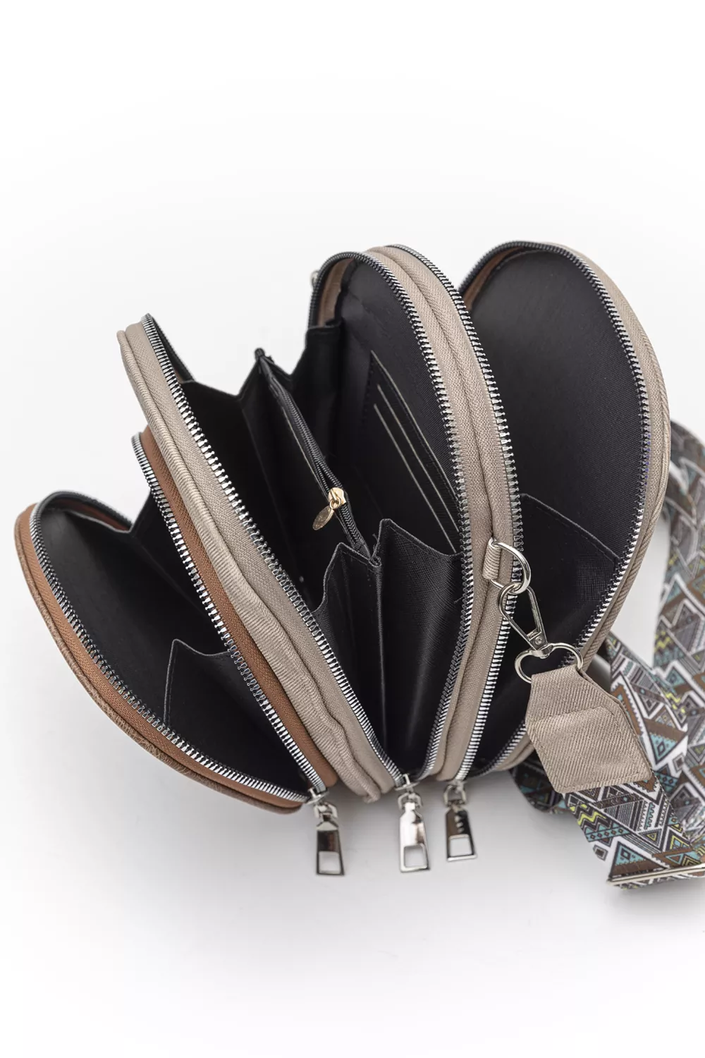 Χιαστί τριθέσιο τσαντάκι σταθερό για όλες τις ώρες της ημέρας. Πολλές βοηθητικές θήκες στο εσωτερικό του. Με αυξομειούμενο μαλακό ιμάντα. Υλικό: Vintage οικολογικό δέρμα συνδυασμένο με απομίμηση jean υφάσματος σε οικολογικό δέρμα