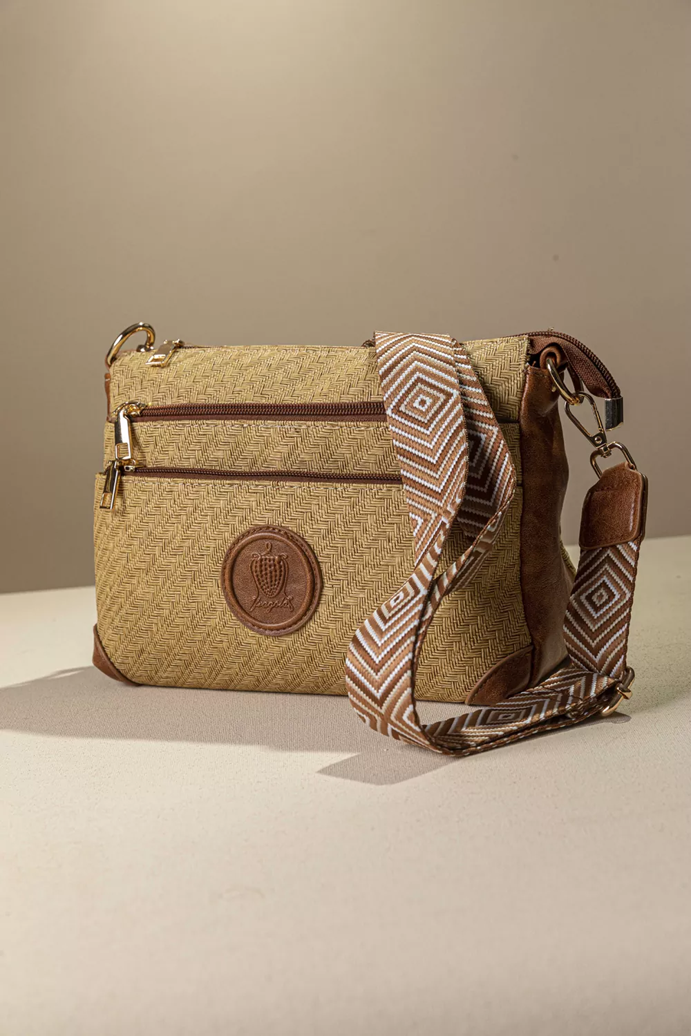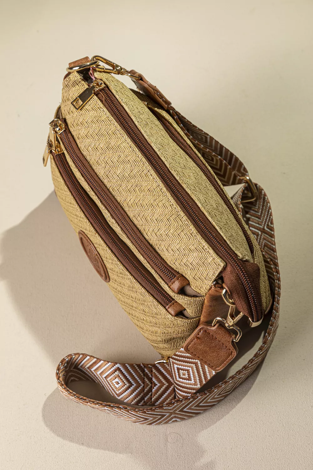 Υλικό: Συνθετικό ανάγλυφο δέρμα με μορφή ψάθας σε γήινα χρώματα