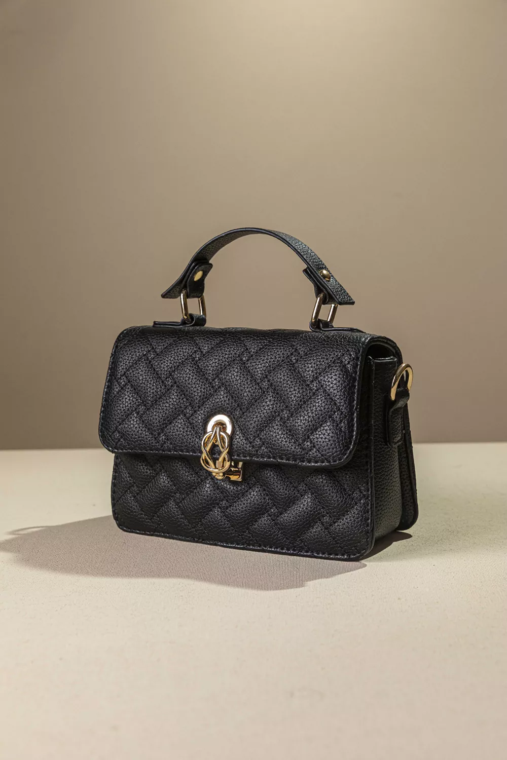 • Τριθέσια κομψή τσάντα χειρός με καπιτονέ υφή και χρυσό εντυπωσιακό κλείσιμο.